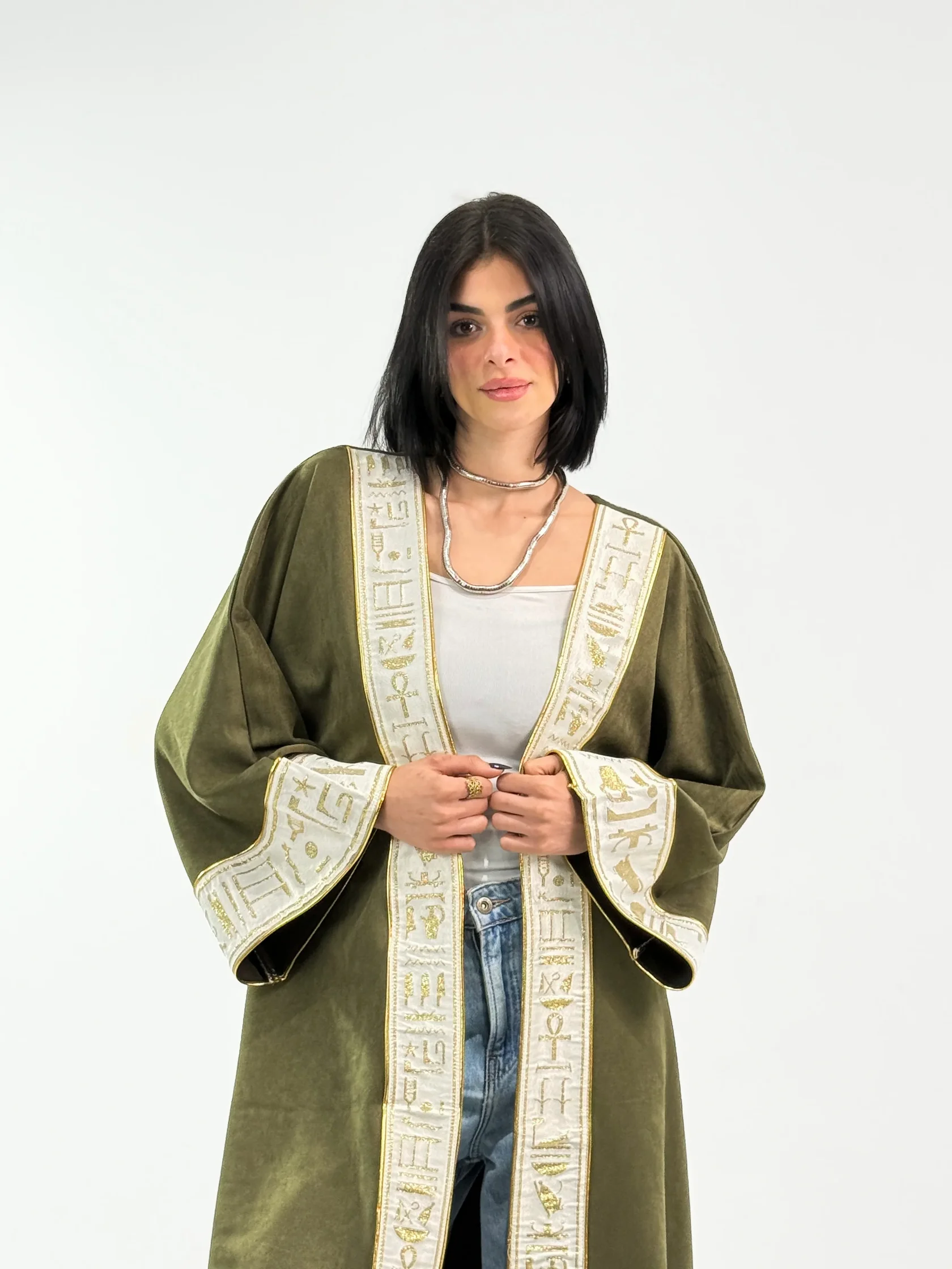 This is a small, changing collection of what I'd pack if I were you. Caftans that move beautifully through mosque light. Pieces that carry Egypt's stories without shouting them. Things you'll wear here and want to take home.